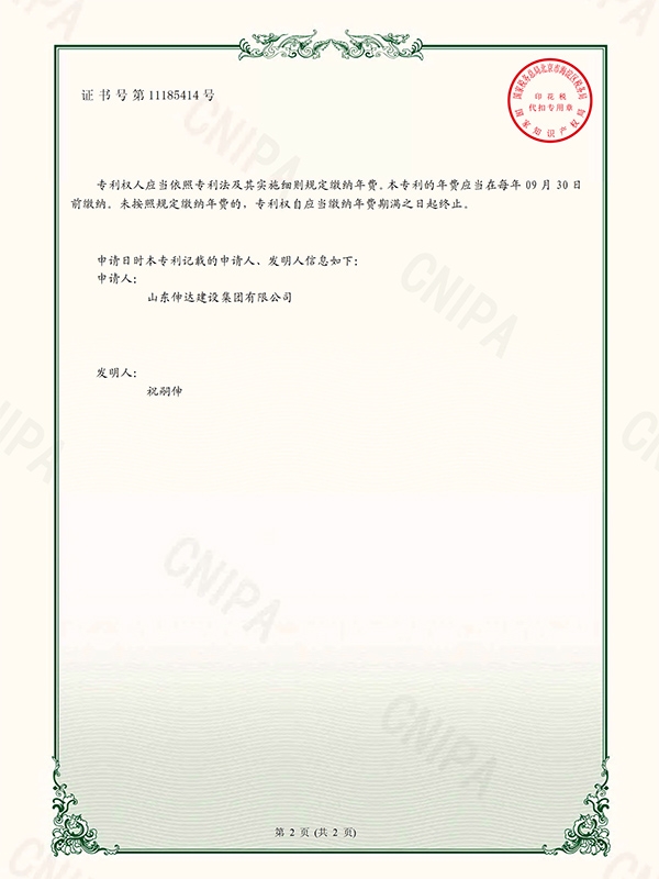 混凝土澆筑后保護裝置專利證書 2021-10-25 本文被閱讀 2967 次
